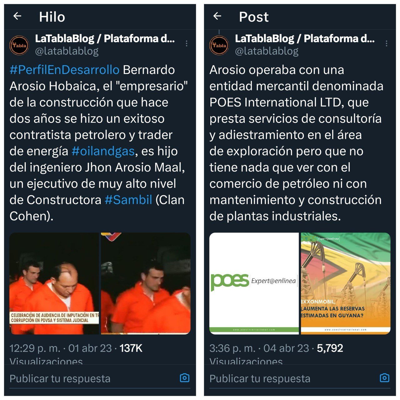 Redacción: La Tabla/Plataforma de Periodismo de Datos 2AGO 2025 Ronald Oribio Quintana, uno de los prisioneros intercambiados entre Venezuela y Estados Unidos el pasado 18 de julio, es el máximo directivo de POES International LTD, compañía que recibió embarques de petróleo como pago por trabajos de mantenimiento y recuperación ejecutados por el empresario Bernardo Arosio en Petro San Félix (PDVSA) entre 2021 y 2023, durante la gestión del entonces ministro de Petróleo Tareck El Aissami. La conexión operativa quedó documentada mediante testimonios de trabajadores de PDVSA y registros corporativos. Arosio, contratista principal sin experiencia petrolera previa, supervisó personalmente las labores en instalaciones críticas mientras POES International LTD –empresa registrada en Reino Unido bajo el rubro de «servicios de apoyo empresarial»– actuó como receptora legal de tanqueros petroleros asignados por PDVSA. Este mecanismo de trueque crudo-servicios fue diseñado para eludir sanciones financieras internacionales. Ronald Oribio, ingeniero petrolero con experiencia en Halliburton y BP, dirigía POES desde 2014. Pese a figurar como «inactiva financieramente» en registros británicos, la empresa operaba en Venezuela con sedes en Caracas y Lecherías. Su perfil técnico contrastaba con su rol en transacciones petroleras: expertos del sector señalaron que POES se especializaba en análisis de reservas, no en comercio de crudo. El esquema colapsó en 2023 cuando Arosio fue detenido en la megacausa anticorrupción de PDVSA. Documentos incautados en la Torre BOD (Caracas) revelaron que POES compartía oficinas con Prodata Energy, firma de Arosio para exportar gas a Colombia. Oribio, residente en Baltimore (EE.UU.), fue arrestado en Caracas el 7 de enero de 2025 junto a su hermano Erick durante una visita navideña, siendo liberado seis meses después en el intercambio bilateral. PDVSA no ha emitido declaraciones sobre los contratos. El Ministerio de Petróleo, bajo nueva dirección desde 2024, mantiene una investigación abierta sobre pérdidas por 13.338 millardos de dólares durante el período de El Aissami.