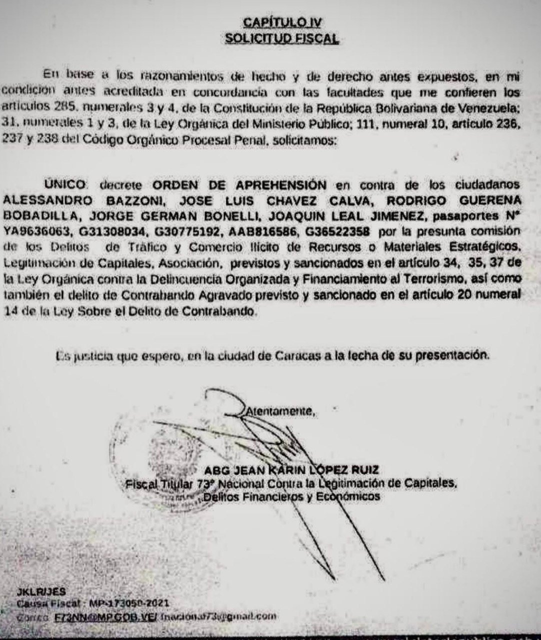 Con insistencia se rumoreó recientemente que Bazzoni habría llegado a un acuerdo con Tarek William Saab, cuando aún ocupaba el cargo de fiscal general, luego de entregarle —presuntamente— en Milán varios millones de euros a Jean Karin López Ruiz, enviado para tales efectos.