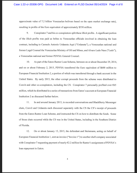 Entre los principales receptores de sobornos se encuentran Alvaro Ledo Nass, quien para entonces fungía como consultor jurídico de PDVSA, y Carmelo Antonio Urdaneta Aqui, exasesor jurídico del Ministerio de Petróleo y Minería. Según el documento judicial, la red de Gorrín y sus socios pagó millones de dólares a estos individuos para asegurar la aprobación y ejecución de los contratos de préstamo que generaron los dividendos de Eaton Global.