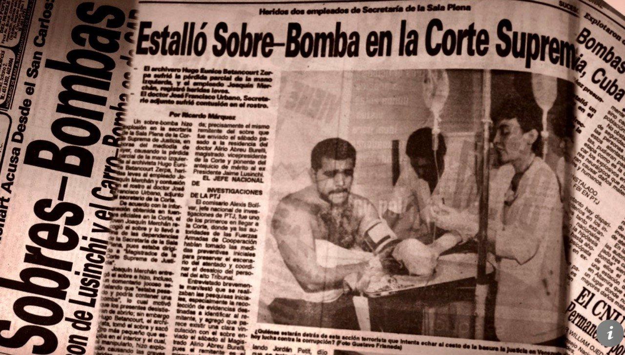 Uno de estos sobres, armado con material explosivo C-4 y dirigido a los miembros de la Sala Plena, explotó, cercenándole la mano izquierda y parte del brazo al funcionario Hugo Betancourt Zerpa.