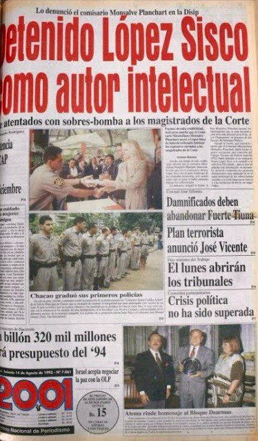 El 16 de julio de 1993, un desconocido llamado Pedro Carmona envió cuatro sobres bomba a los magistrados de la Corte Suprema de Justicia.