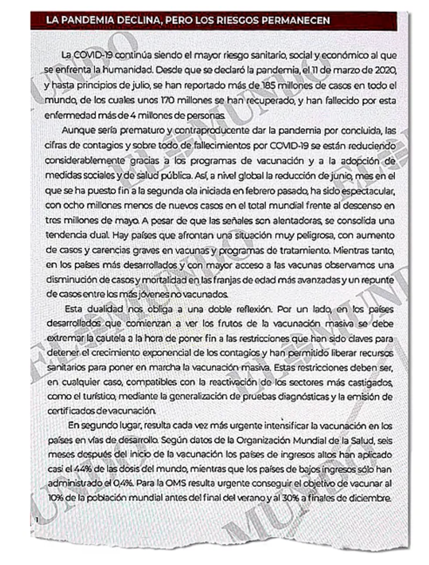 La maquetación corría de parte de Laura y Alba Rodríguez, tal y como ellas muestran en el porfolio de los clientes que han encargado tareas de diseño a su agencia. Puede comprobarse la inclusión de una serie de informes escritos con ‘lorem ipsum’ (texto de relleno en latín para presentar un diseño gráfico) en los que se ve la misma tipografía (de la familia Serif con remates para el cuerpo y Sans-Serif sin remate para el titular). También se incluye el cintillo en color rojo en el que se inserta el título de un apartado.