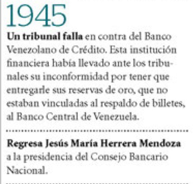 Es a partir del año 1943 que figura Andres Velutini como presidente del Consejo Bancario Nacional.
