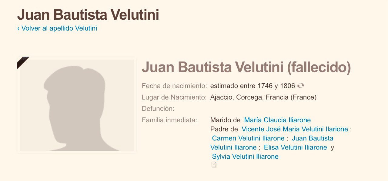 Juan Bautista Velutini (fallecido), nacido aproximadamente entre 1746 y 1806 en Ajaccio, Córcega, Francia.